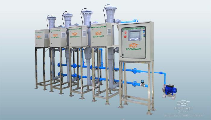 นอกจากระบบผลิตน้ำอ่อนด้วยเรซิ่น ECONOWATT ได้ร่วมวิจัยกับ MTEC และประดิษฐ์นวัตกรรมเครื่องจับตะกรันในน้ำด้วยไฟฟ้า EHR (Electro Hardness Removal) ปราศจากการใช้สารเคมี มีคุณสมบัติเด่นในการดูดแร่ธาตุในน้ำอุณหภูมิสูงๆได้ดี ซึ่งเหมาะกับน้ำที่มีแร่แคลเซียม และ แมกนีเซียม ปะปนอยู่เป็นจำนวนมากเกินกว่าความสามารถของเรซิ่น โดยใช้หลักการอิเล็กโทรไลซิส จ่ายกระแสไฟฟ้าเข้าไปที่แผ่นโลหะ (Anode) เพื่อให้เกิดปฏิกิริยา ค่าความกระด้างที่อยู่ในรูป Ca2+ Mg2+ จะถูกดูดไปเกาะติดเป็นผลึกที่ขั้วด้าน Cathode ซึ่งสามารถทำความสะอาดแผ่นโลหะด้าน Cathode ที่มีผลึกตะกรันเปราะแข็งติดอยู่ด้วยการขูดออกได้โดยง่าย เหมาะสำหรับหอผึ่งเย็น ระบบระบายความร้อนด้วยน้ำระเหยที่มีอุณหภูมิเกินกว่า 35 °C น้ำทิ้งที่มีค่า TDS เกินค่ามาตรฐาน และน้ำ Recycle ที่มีความกระด้างสูง